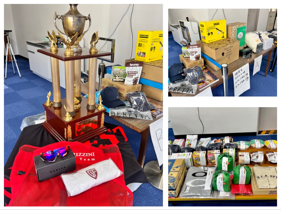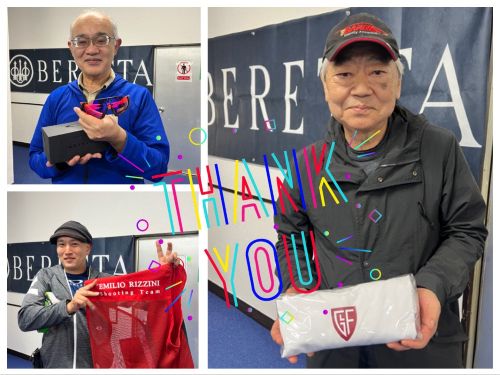 またお取引各社より多くの協賛品もお寄せ頂き、Berettaの シューティングバッグ(ぐんまジャイアント射撃場)やシューティングキャップ、Charme社オリジナルTシャツ(シャルム商会)、Waltherコンパクトライト(ベレッタジャパン社)、射撃ラウンド券(ぐんまジャイアント射撃場)。。豪華なラインナップとなり、抽選とじゃんけん大会でも大いに盛り上がって頂きました????